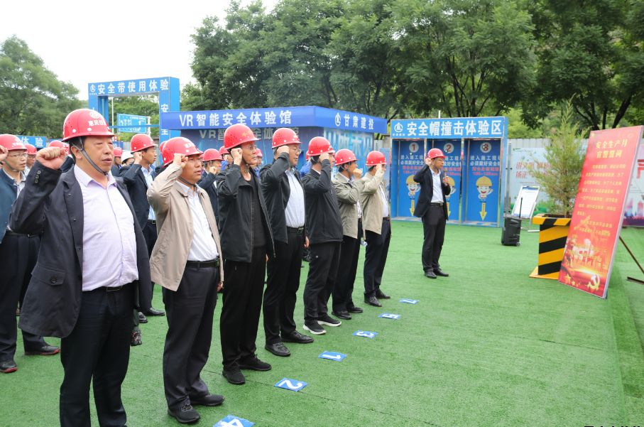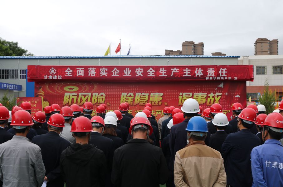 為深入學(xué)習(xí)宣傳貫徹習(xí)近平總書記關(guān)于安全生產(chǎn)的重要論述,積極響應(yīng)國家、省、市和上級有關(guān)單位關(guān)于開展“安全生產(chǎn)月”活動的號召,6月27日上午,公司在御景華府在建項目工地開展2019年“安全生產(chǎn)月”活動。公司黨委委員、總經(jīng)理胡紅訓(xùn),市安監(jiān)站站長尚平,副總經(jīng)理魏顯文、馬新平、柳振源,總工程師高健,總經(jīng)濟(jì)師王國太,公司職工代表,御景華府、平?jīng)鲆恢泻突菝裢顿Y大廈項目各參建單位負(fù)責(zé)人,共計70余人參加本次活動。