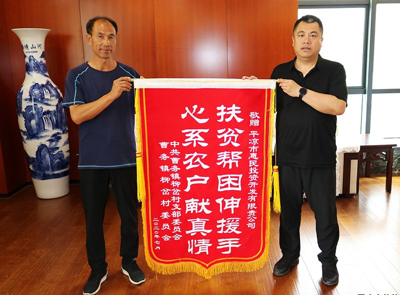 接受曹務(wù)鎮(zhèn)柳岔村黨支部、村委會敬贈的錦旗