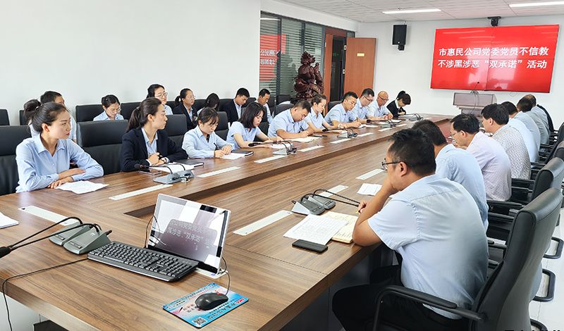 為了深入開展“四抓兩整治”工作,進一步堅定黨員政治信仰和理想信念。7月17日,市惠民公司黨委組織黨支部、全體黨員開展黨員不信教、不涉黑涉惡“雙承諾”活動,活動由黨委委員、副總經(jīng)理魏顯文主持舉行,各黨支部書記及全體黨員參加“雙承諾”活動。