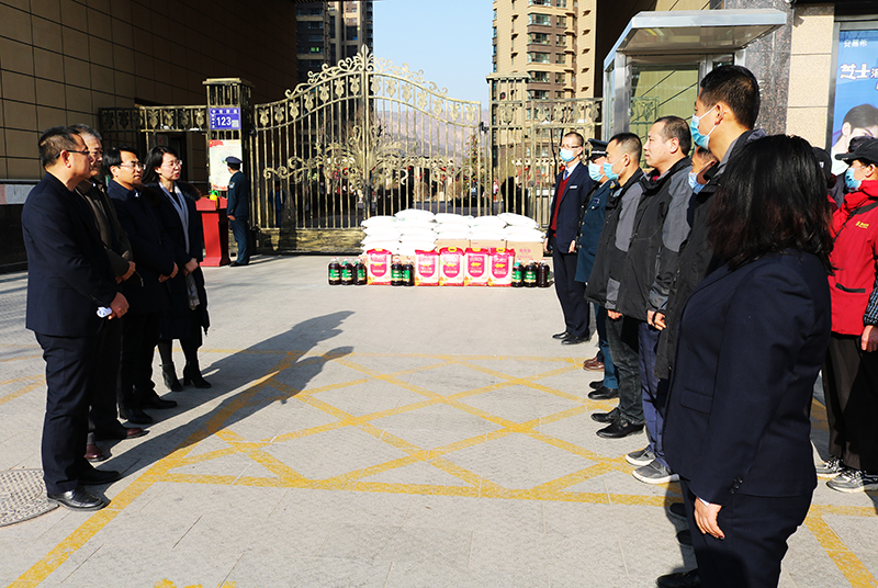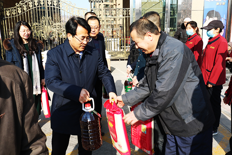 2月8日,市惠民公司黨委委員、總經(jīng)理胡紅訓(xùn),副總經(jīng)理王徐周、鄭忠軍、馬新平、王彥彥分組帶領(lǐng)黨委辦(辦公室)和工會負(fù)責(zé)人深入惠通公司、新城國際物管站、柳湖路苗圃、新北嘉園物管站、惠民花園物管站、市委市政府物業(yè)服務(wù)中心、法院物業(yè)服務(wù)中心、平?jīng)鲑e館立體停車庫、惠民大廈物業(yè)服務(wù)中心,看望、慰問了疫情防控和春節(jié)期間堅守崗位的一線職工,向他們送去了慰問品和新年祝福。