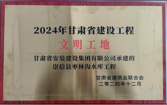 近期,由全過程咨詢公司監(jiān)理的崇信縣棗林溝水庫工程榮獲“2024年甘肅省水利工程文明工地”“2024年甘肅省建筑業(yè)綠色建造施工水平評(píng)價(jià)合格”稱號(hào)。